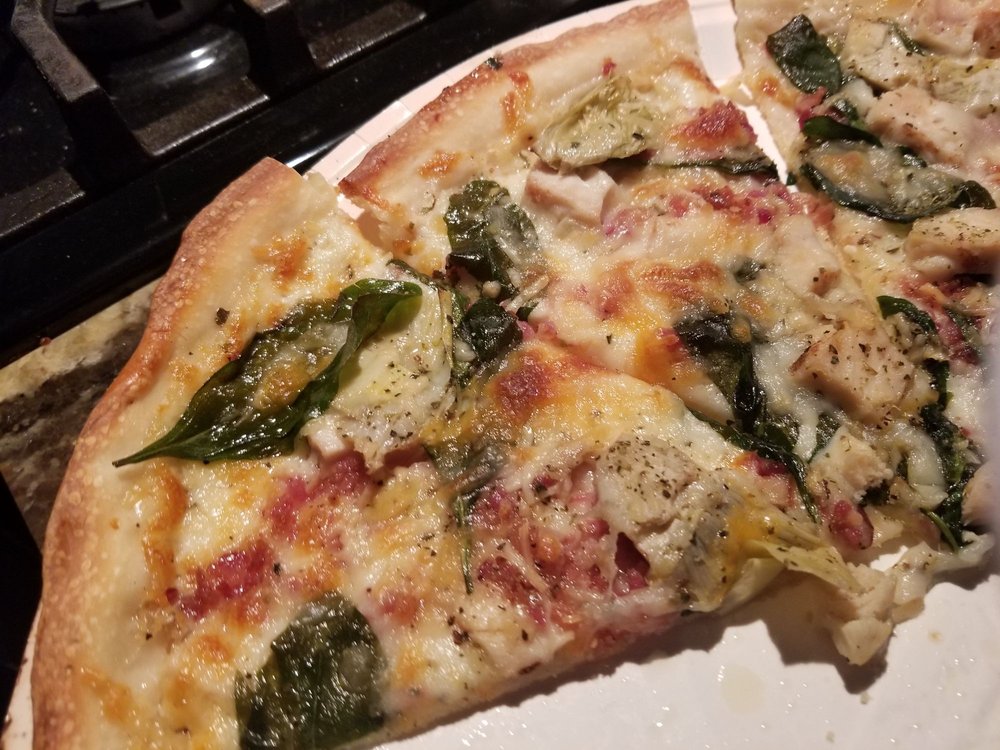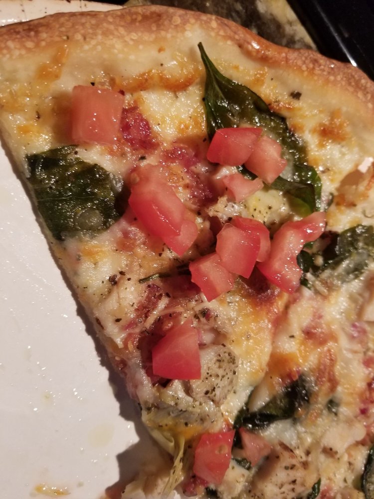 Grilled Chicken, Roma Tomatoes, Green Onions, Herb & Cheese Blend, Whole-Milk Mozzarella, and Creamy Garlic Sauce. Creamy Garlic Dipping Sauce on the Side.